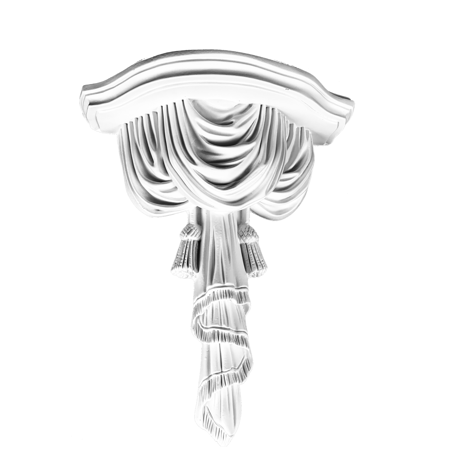 Add theatrical charm to your interiors with the Draped Elegance Corbel, a statement piece inspired by classic luxury and timeless design. This stunning corbel features an intricately sculpted curtain motif, complete with flowing fabric folds and tassel detailing, offering drama and refinement to any space. With a crisp white finish and elegant form, it’s the perfect way to bring artistic depth to mantels, wall niches, and cabinetry — all while remaining lightweight and easy to install.