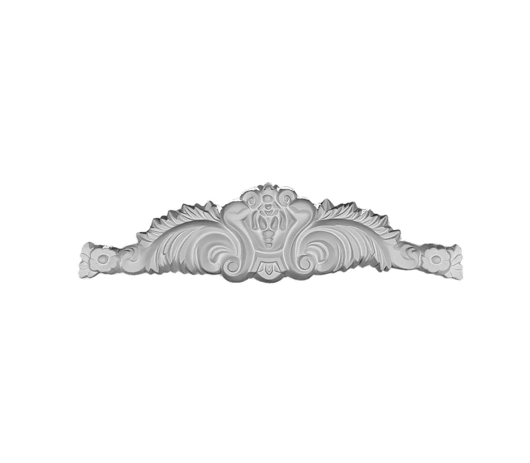 Elevate your interiors with the Regal Crest Flourish, a striking decorative ornament designed to bring sophistication and visual impact to your space. Crafted from high-quality polyurethane, this white architectural accent features an intricate design of bold scrollwork, acanthus leaves, and floral motifs—anchored by a commanding central crest. Measuring 11-13/16" wide by 3-1/16" high and 7/8" deep, it makes an ideal centerpiece above doorways, mantels, mirrors, or headboards.